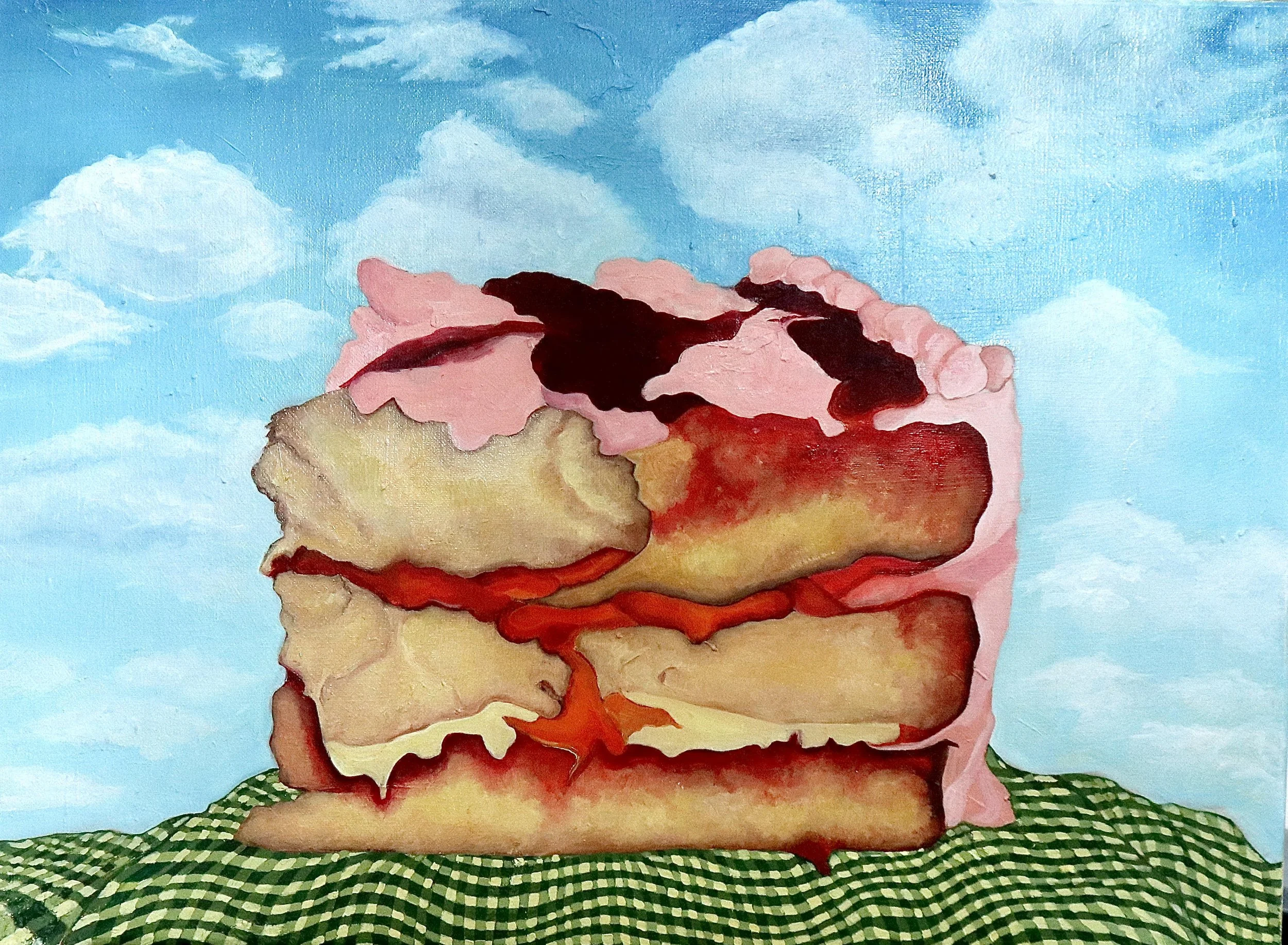 Peach Raspberry Cake, 20 x 24 in. Oil on canvas (sold)