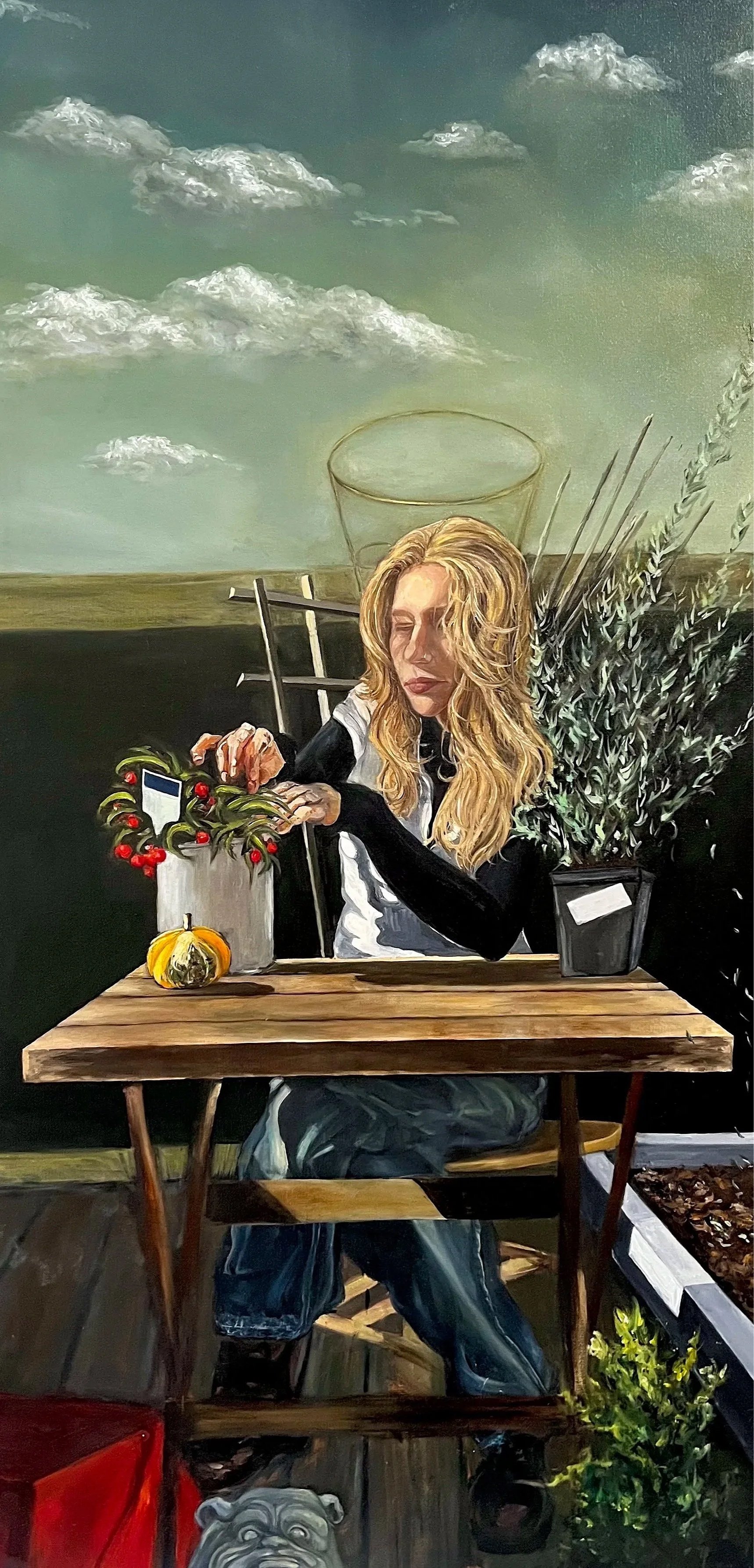 Eva at Garden Center (lunch break), 24 x 48 in. Oil on canvas
